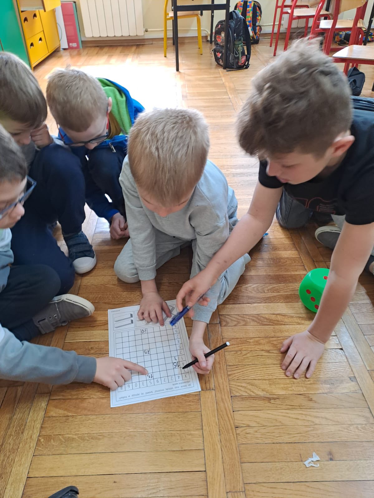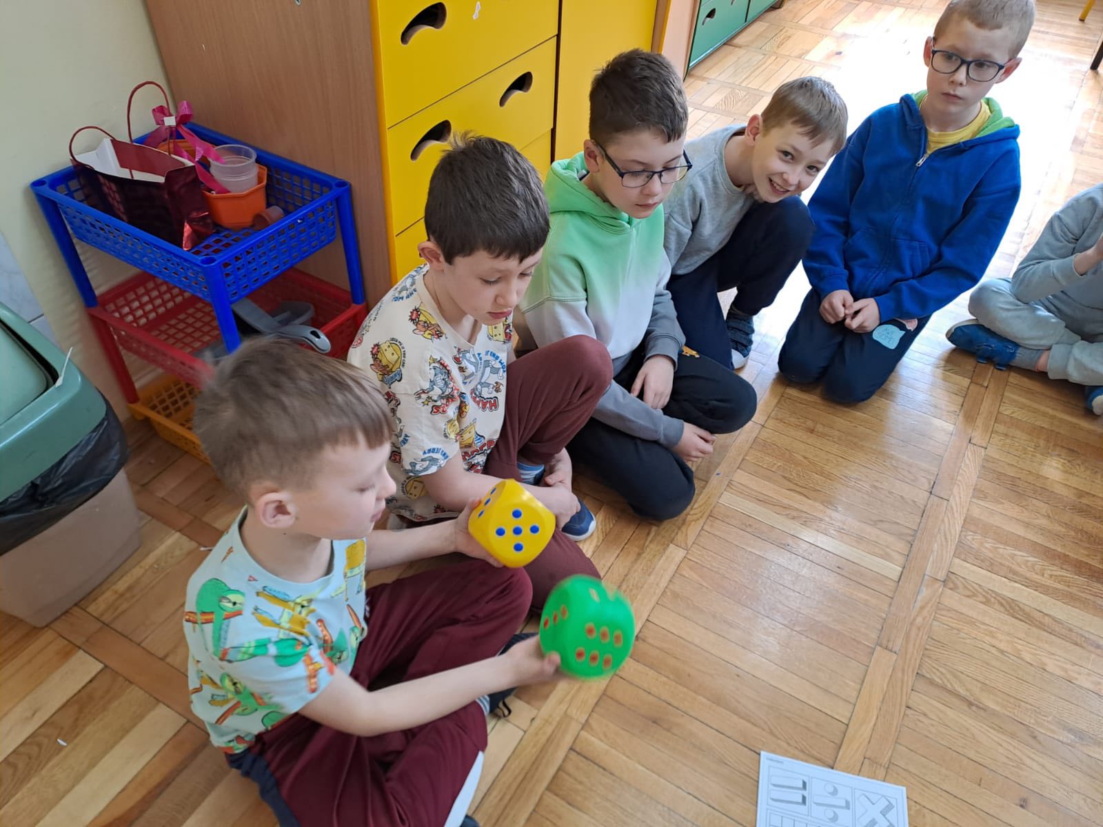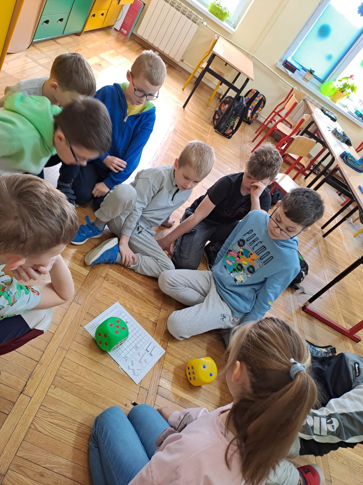 Uczniowie ćwiczyli też mnożenie, rzucając dwiema kostkami i mnożąc liczby z wyrzuconych oczek.