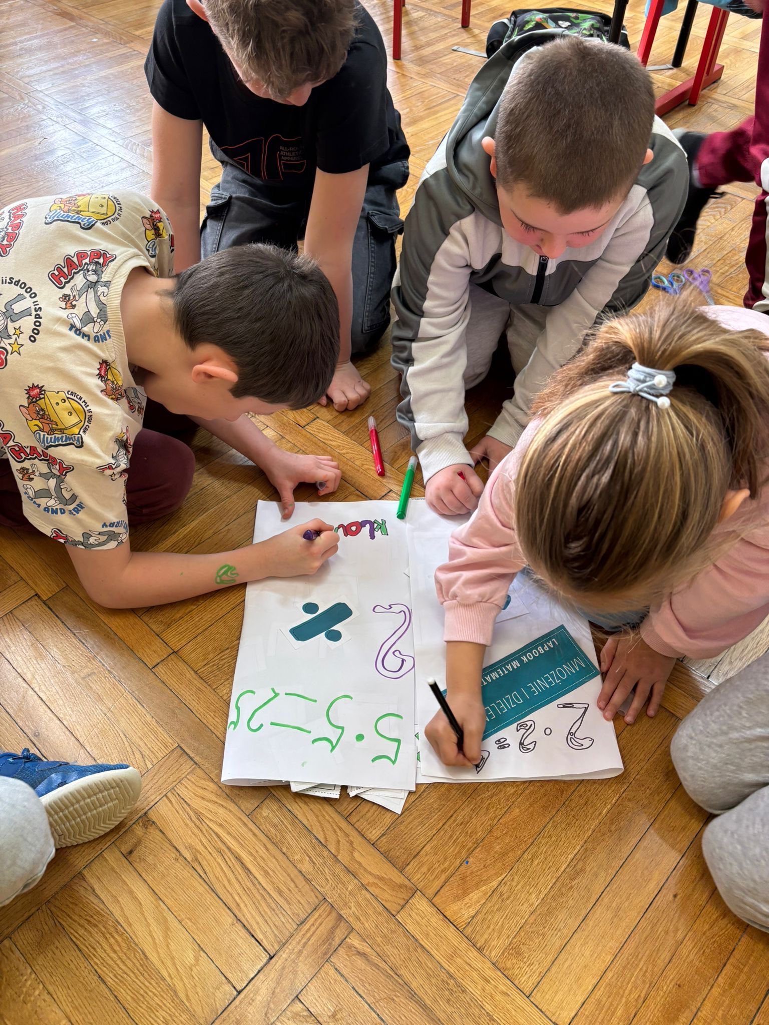Uczniowie klasy II świętowali Dzień Matematyki, wspólnie tworząc lapbook o mnożeniu i dzieleniu. Podczas pracy cała klasa utrwalała wiedzę i rozwiązywała działania matematyczne.
