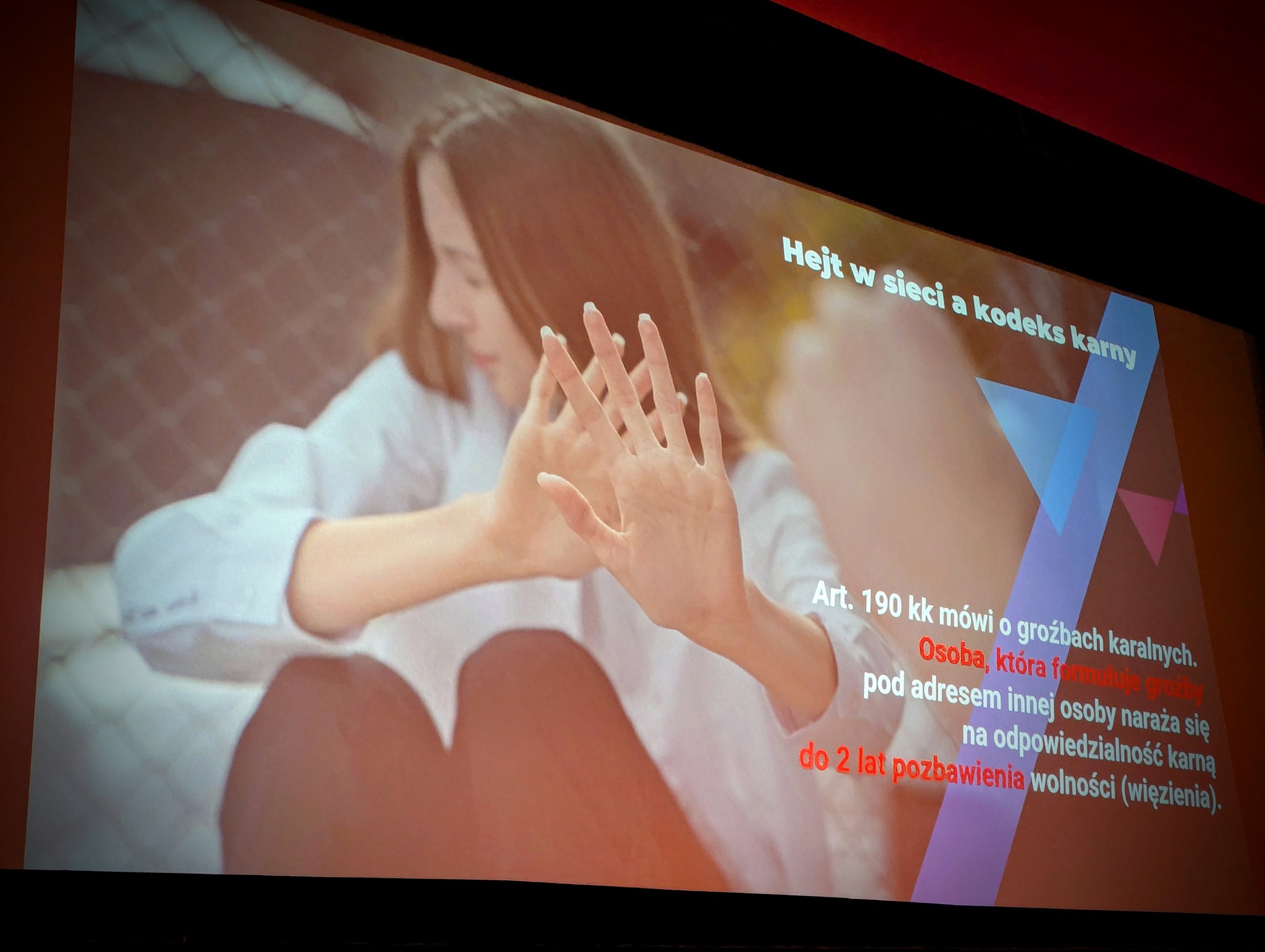 Pan Łukasz Gierek w sposób jasny i konkretny przedstawił, w jaki sposób hejt potrafi brutalnie niszczyć życie niewinnych osób. Posługując się przykładami z życia codziennego oraz prawdziwymi historiami, uświadomił uczniom, że pozornie „niewinny” komentarz może stać się początkiem poważnych problemów, a nawet depresji u osoby, która staje się ofiarą internetowej nagonki. Podkreślił, że w sieci nic nie ginie, a napisane słowa mogą mieć długotrwałe konsekwencje. Prowadzący zwrócił uwagę na odpowiedzialność karną związaną z hejtem, zniesławieniem czy groźbami. Uczestnicy spotkania dowiedzieli się, że anonimowość w sieci jest złudna, a sprawcy przemocy słownej mogą ponosić realne konsekwencje prawne swoich działań. Uczniowie zostali zachęceni do reagowania na przejawy hejtu, wspierania osób pokrzywdzonych oraz budowania w swoich środowiskach atmosfery szacunku i empatii.
