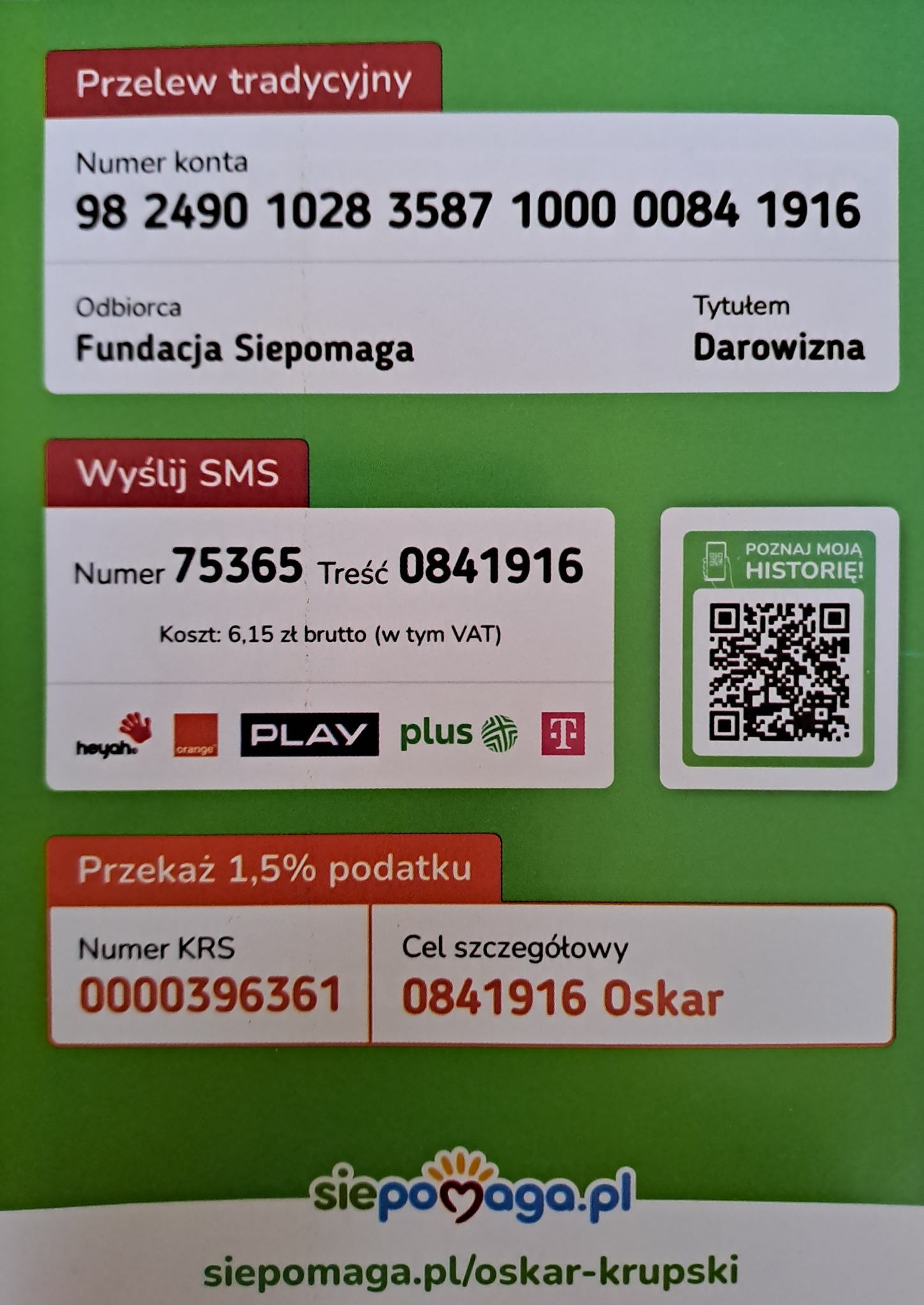 Możecie pomóc przekazując 1,5% podatku https://www.siepomaga.pl/oskar-krupski/procent-podatku, wpłacając dowolną kwotę https://www.siepomaga.pl/oskar-krupski, udostępniając tę informację dalej.