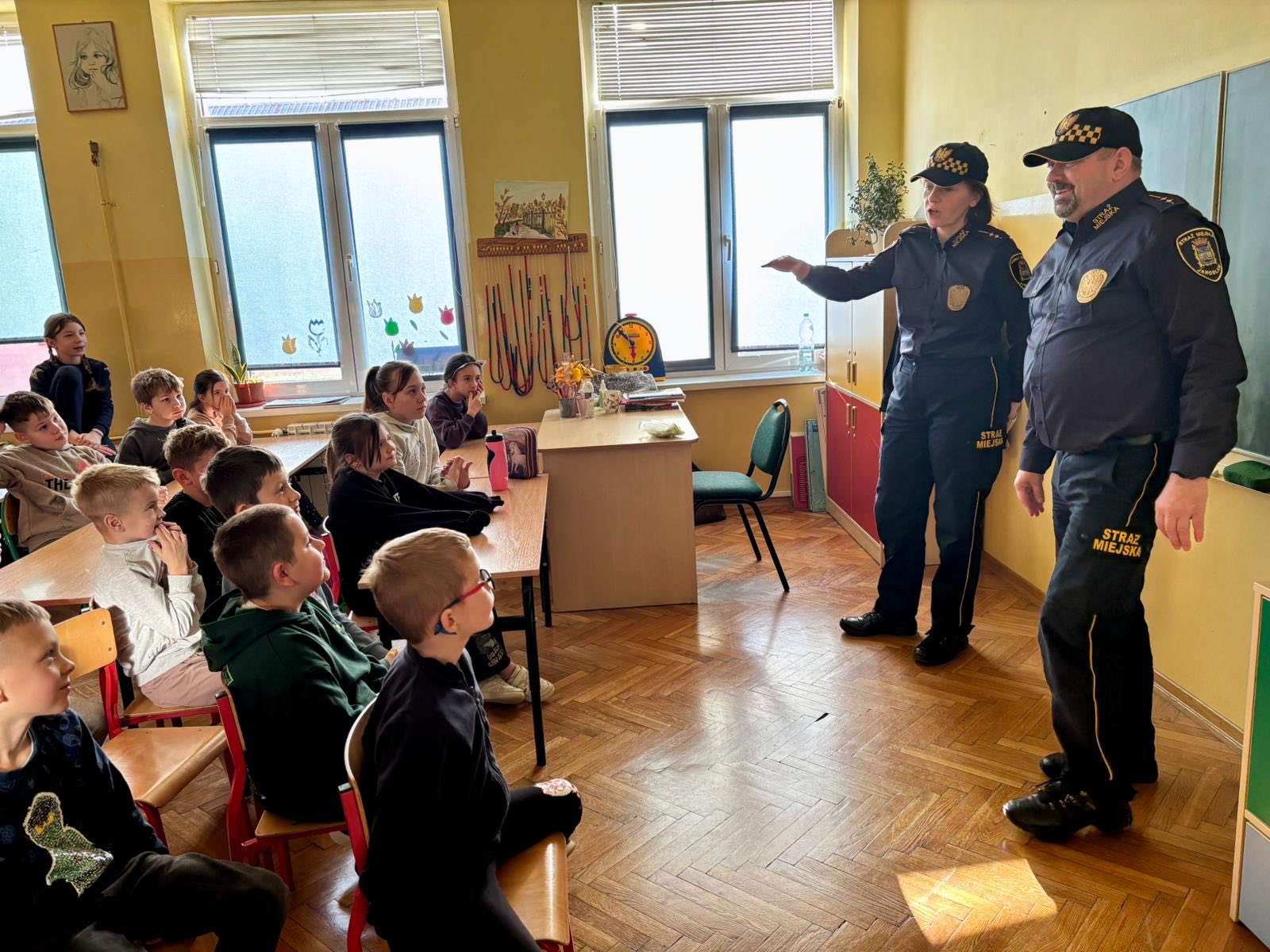20 listopada w naszej szkole odbyły się wyjątkowe zajęcia, podczas których uczniowie klas 1–3 mieli okazję poznać pracę Straży Miejskiej i porozmawiać o tym, jak dbać o własne bezpieczeństwo na co dzień. Funkcjonariusze w przystępny i ciekawy sposób opowiedzieli dzieciom m.in.:
