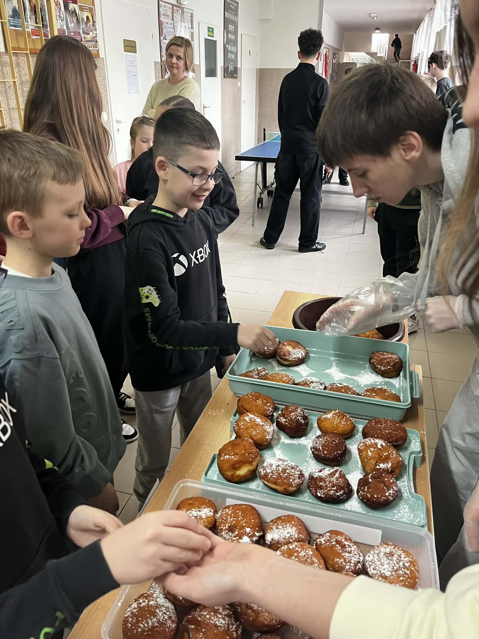 W naszej szkole odbył się kiermasz pączków przygotowanych przez uczniów klasy 8. Ich szlachetna inicjatywa na rzecz Podkarpackiego Hospicjum dla Dzieci w Rzeszowie spotkała się z ogromnym zainteresowaniem całej społeczności szkolnej.