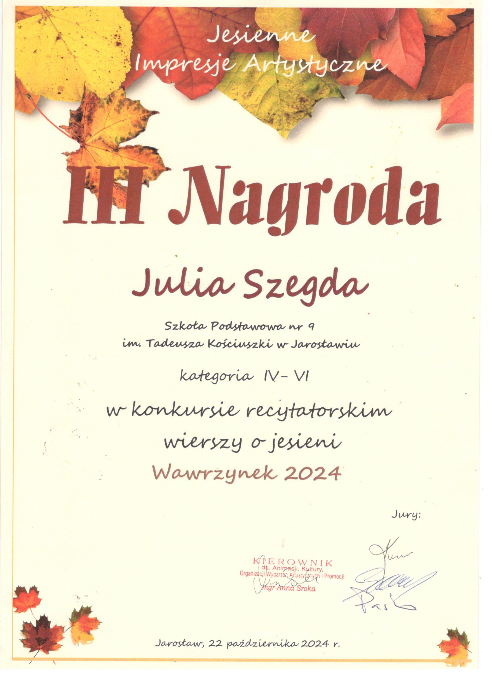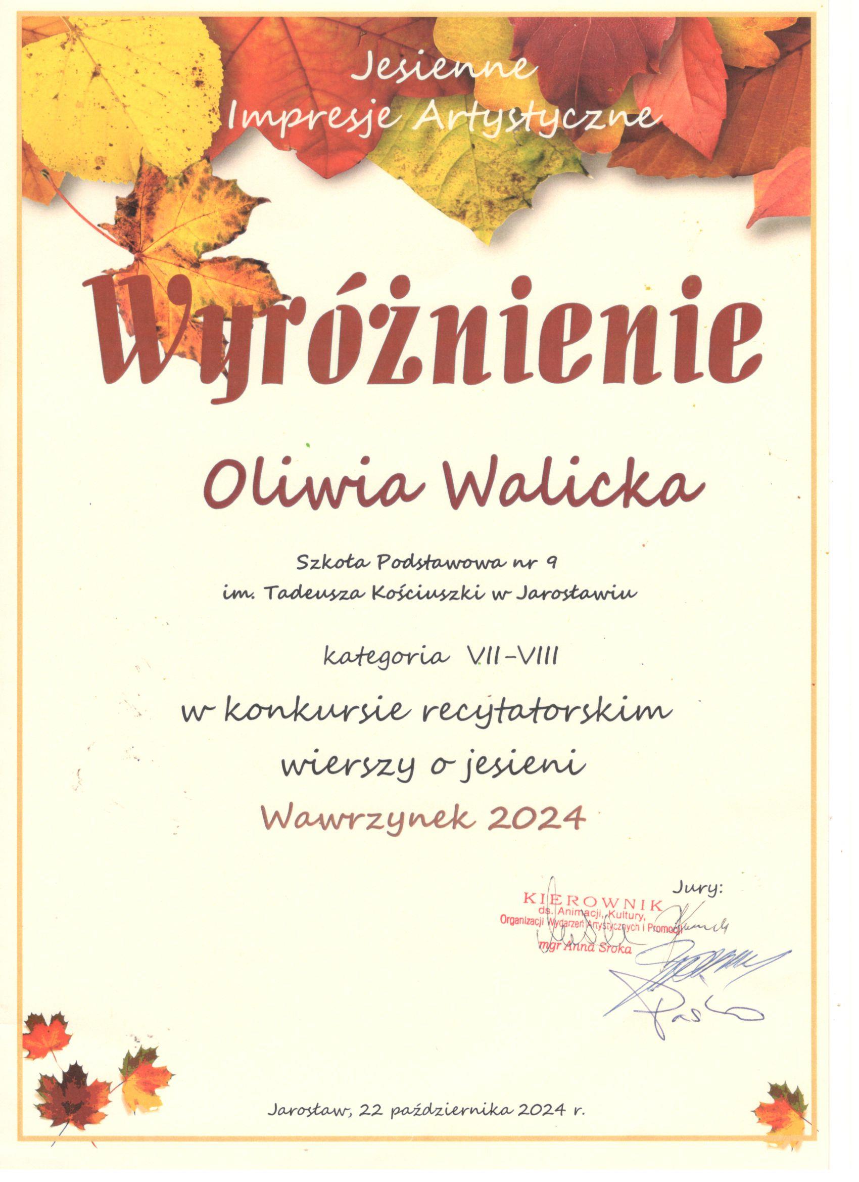 Z radością informujemy, że komisja oceniająca występy młodych recytatorów dostrzegła dwie nasze uczennice. Julia Szegda zdobyła III miejsce, natomiast Oliwia Walicka została wyróżniona.
